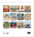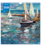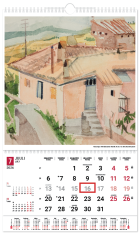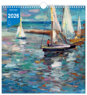 Spiraalköites seinakalender, 330x480 mm, 12 Eesti kunsti pilti, riputusaas, kuupäeva märkija. Kalendaarium sisaldab lipu- ja tähtpäevi, päikesetõuse ja -loojanguid ning kuufaase.
